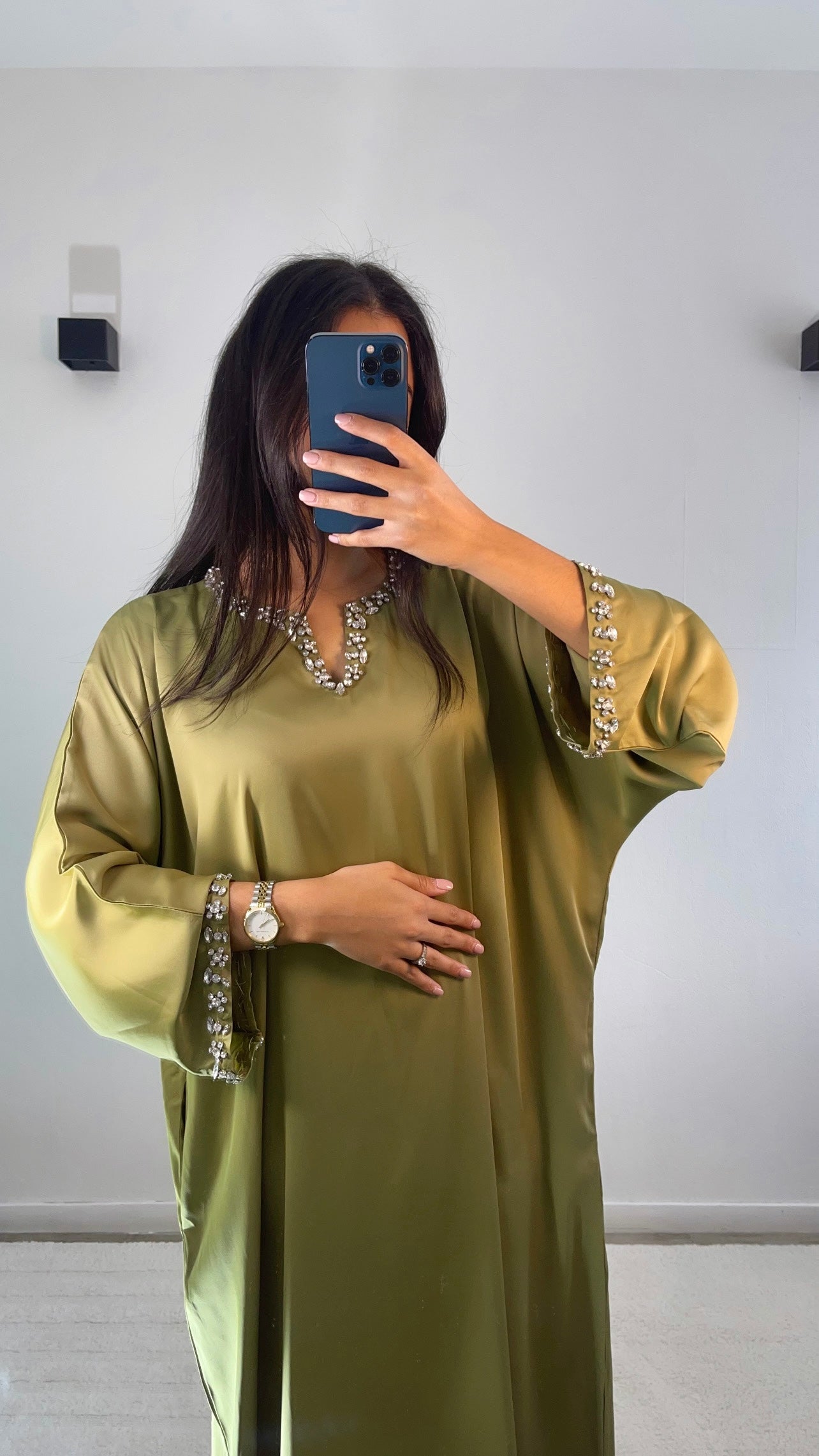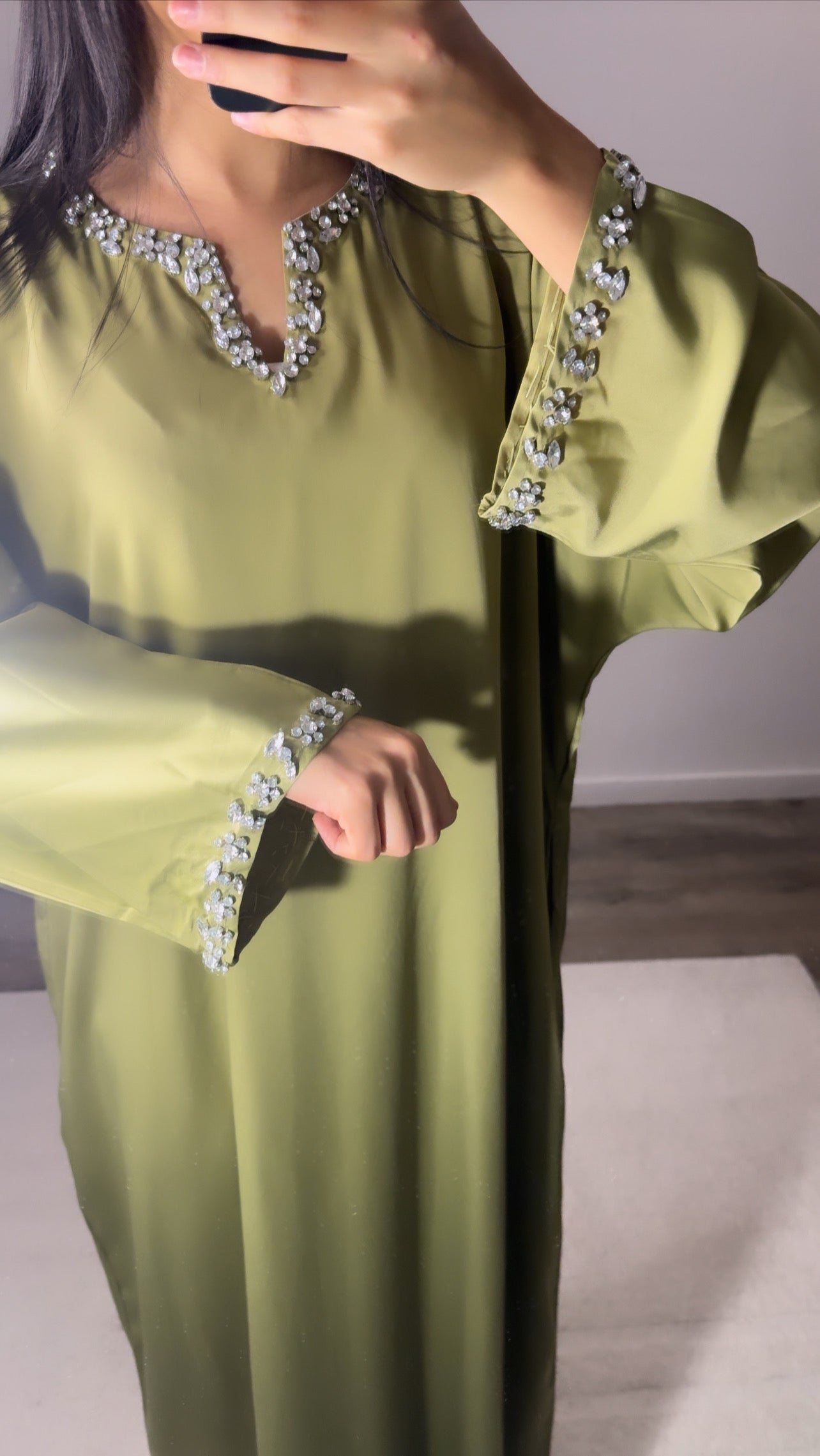 Cette abaya est ornée de sublimes strass qui vous apporteront une touche d'élégance et de glamour. Fabriquée avec soin, cette robe est la pièce parfaite pour briller lors de vos soirées. Soyez la plus belle grâce à cette robe à strass en toutes occasions.