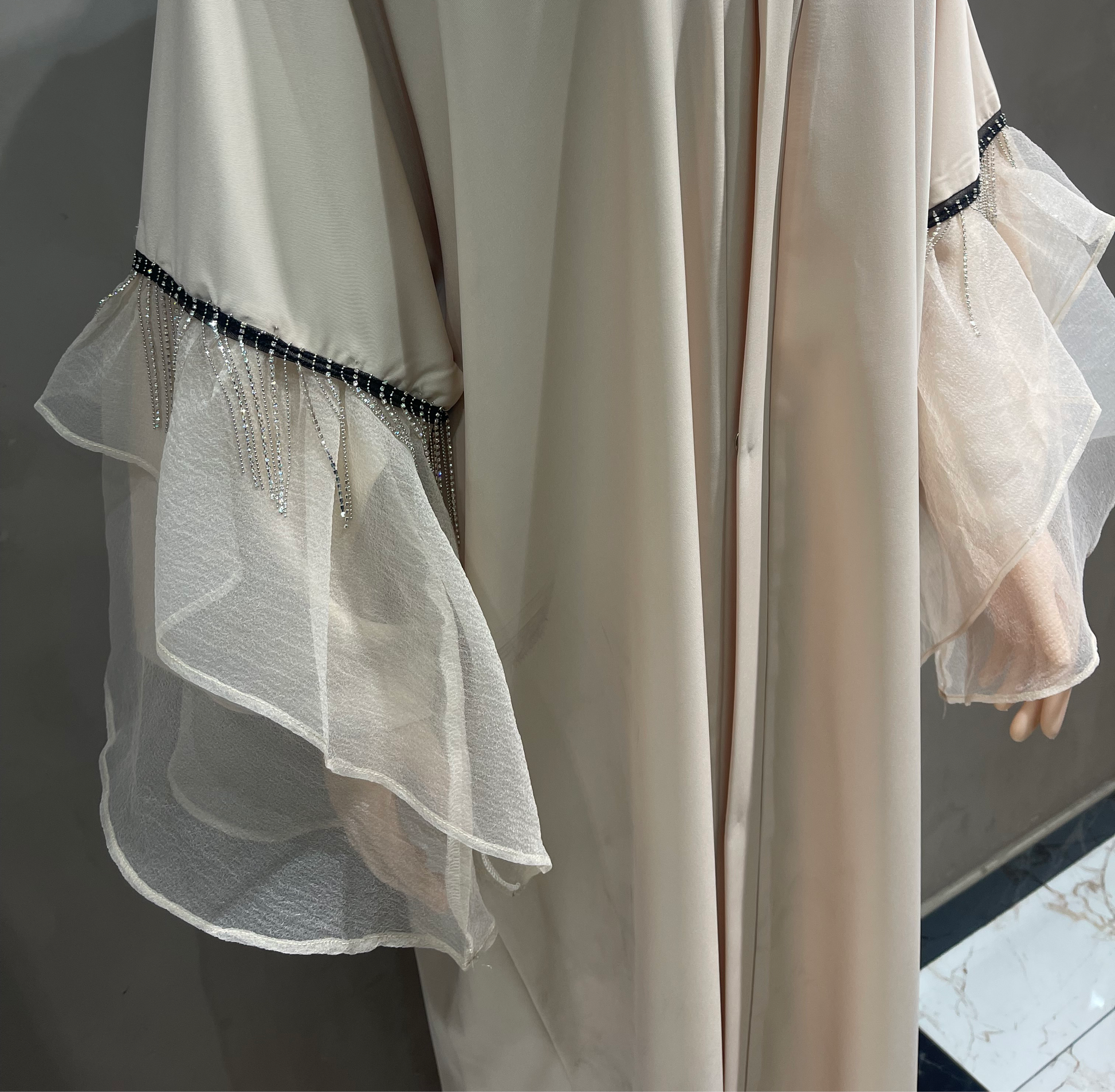 Découvrez l'élégance intemporelle avec notre abaya polyvalente. Portez-la fermée pour une allure classique ou ouverte façon kimono pour une touche moderne.