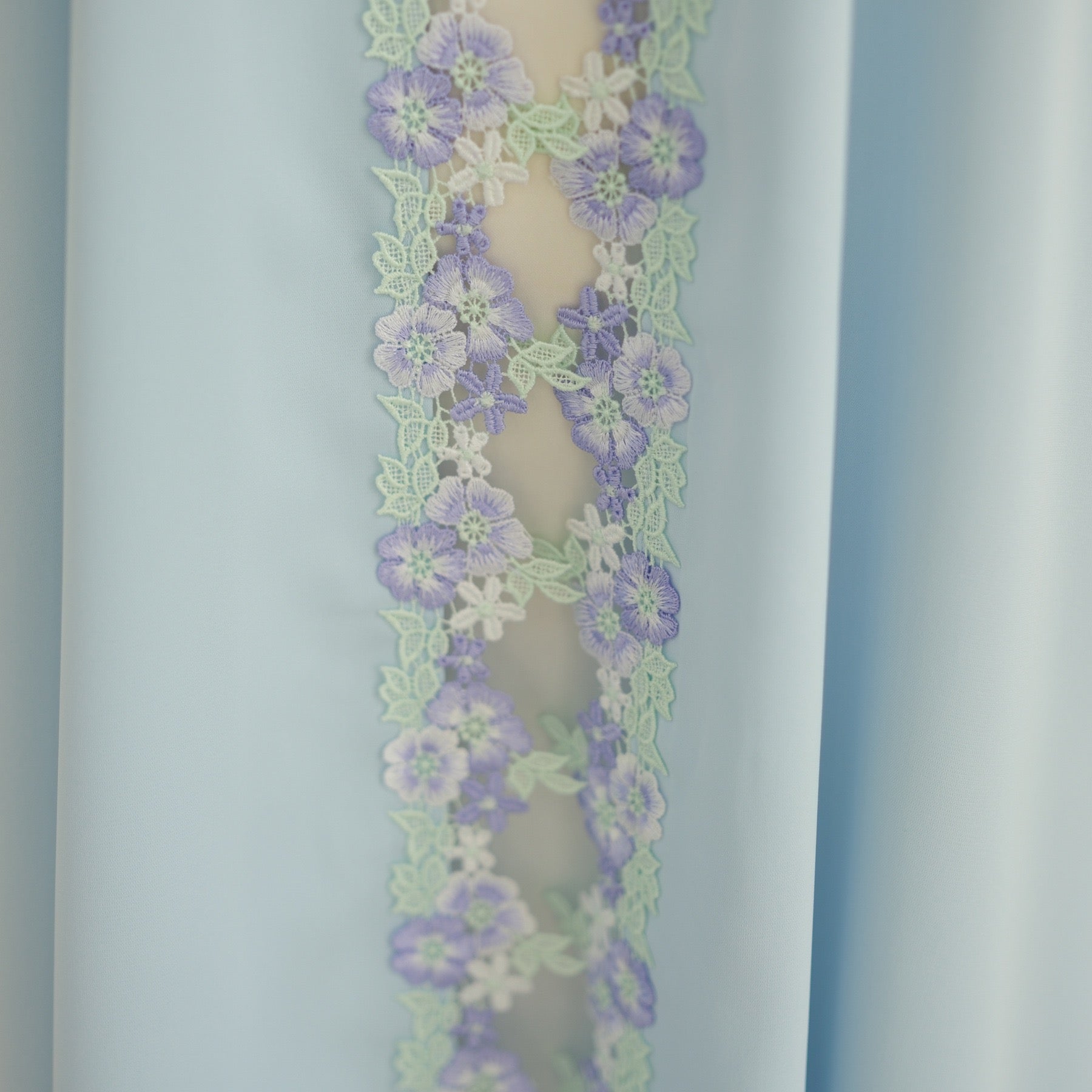 Une pièce qui allie tradition et modernité. Son tissu fluide bleu azur et ses broderies florales délicates en lilas et bleu ciel en font une abaya aussi élégante que confortable.